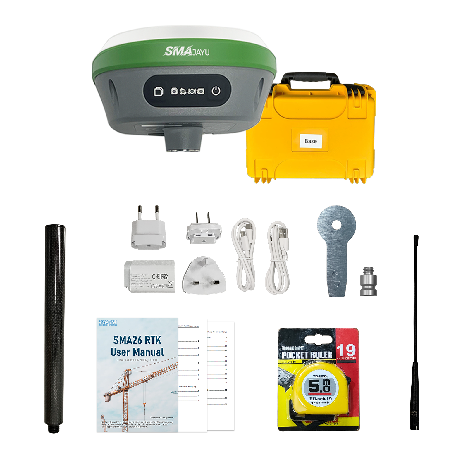 【Wide Protocol Compatibility】 Capable of sending and receiving signals compatible with CSS(Lora),Transparent, TT450S,Trimtalk,TRMMARK3, SOUTH, SATEL standard radio protocols; 5-10 km typically;Under ideal conditions, the maximum distance can reach 15km 【Tilt Compensation】 2.5cm tilt accuracy (≤30°) with no calibration needed, enabling precise measurement in hard-to-reach areas,Tilt measurement max upto 60° 【High Capability & Compatibility】 The SMA26 Plus is an full-constellation RTK GNSS receiver with wide protocol compatibility, making it compatible with multiple RTK brands. Supporting PPP, PPK, and RTK technologies, it delivers versatile, high-precision performance for a wide range of surveying applications 【Smart Handheld Collector】Android 11 handheld with 5.45" HD screen, dual SIM, 9000mAh battery, NFC, IP68 protection, dual-band RTK support, and 13MP rear camera 【All-in-One Integration】 Built-in Bluetooth, UHF radio, WiFi, IMU, antenna, and 32GB storage. Easily switch between base station and rover mode with one device 【Rugged & Reliable】 IP67 waterproof, dustproof, 2m drop resistance. Operates in -45℃ to +75℃. Up to 20 hours rover use with 10000mAh battery